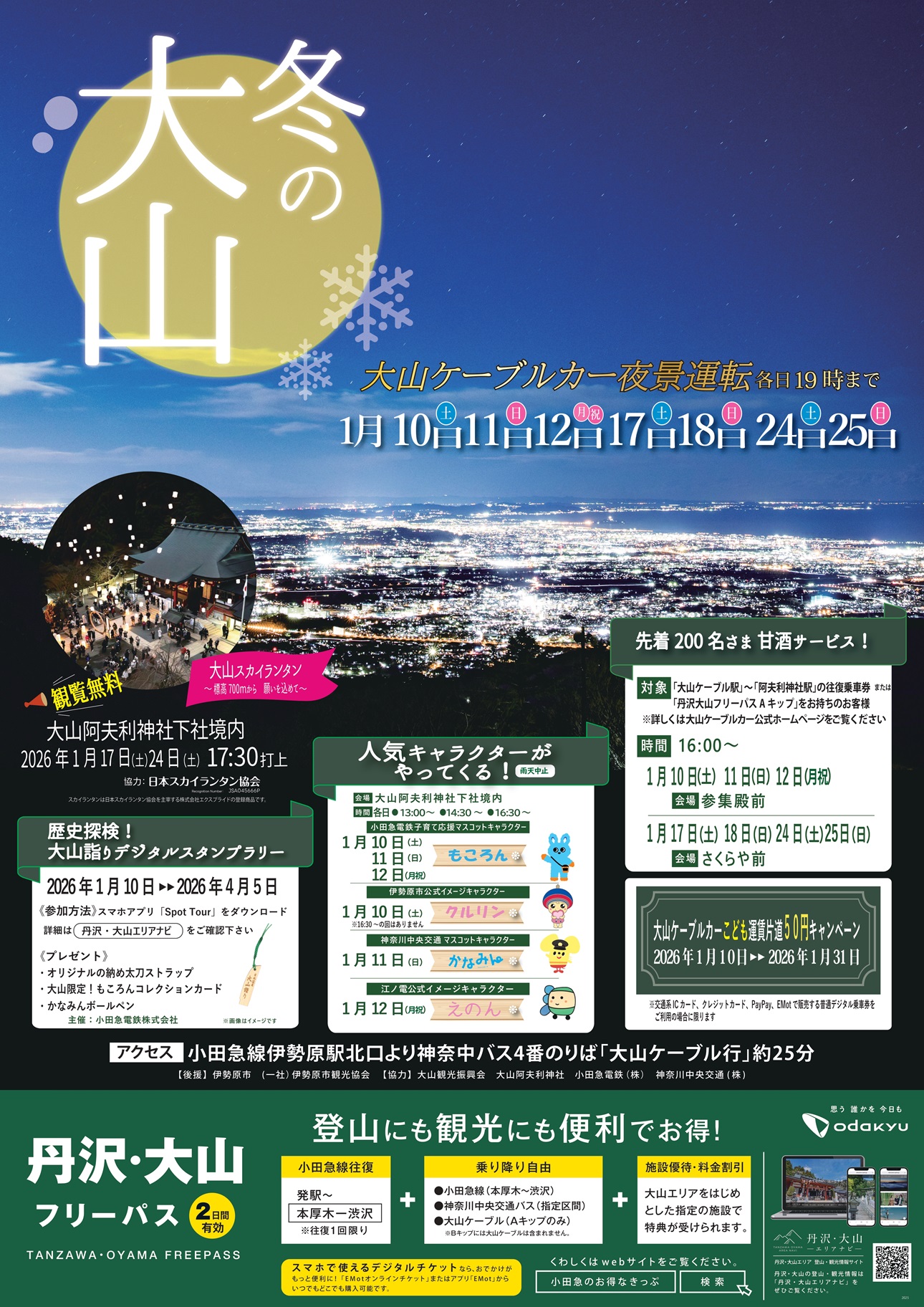 「大山ケーブル~阿夫利神社のケーブルカー往復きっぷ」または「丹沢・大山フリーパスAキップ」をお持ちのお客さまに甘酒のサービスを行います。